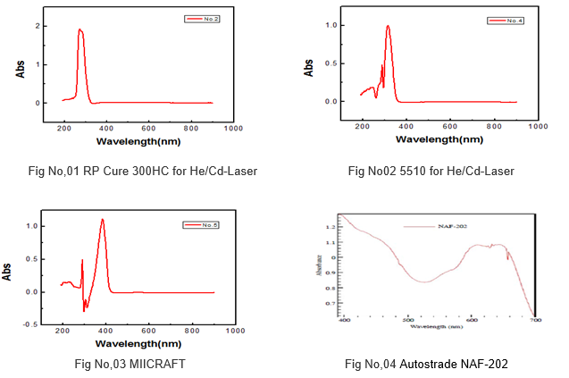 When setting of photo polymer spec then first point is “ sensitivity wavelength “. History of Rapid Prototype Technology was start from UV range sensitivity polymer. Fig No,01 and Fig No,02 was one of polymer product in RP market. Almost “ Energy source wavelength “ and “ sensitivity wavelength ” was match.